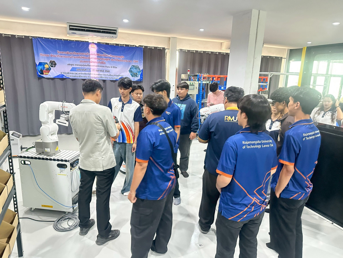 วิศวกรรมอุตสาหการ ผนึกกำลัง สพภ. 43 ตาก จัดโครงการอบรมควบคุมหุ่นยนต์อุตสาหกรรม ยกระดับทักษะรับเศรษฐกิจดิจิทัล