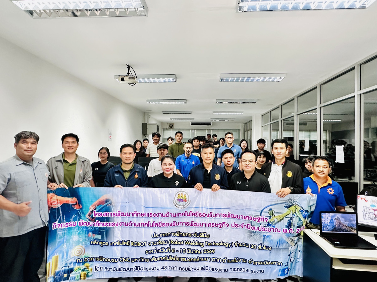 หลักสูตรวิศวกรรมอุตสาหการ คณะวิศวกรรมศาสตร์ จัดกิจกรรมอบรมการฝึกยกระดับฝีมือแรงงาน สาขาเทคโนโลยี ROBOT งานเชื่อม (Robot Welding Technology) ให้แก่นักศึกษาจากหลักสูตรวิศวกรรมอุตสาหการเข้าร่วมกา...