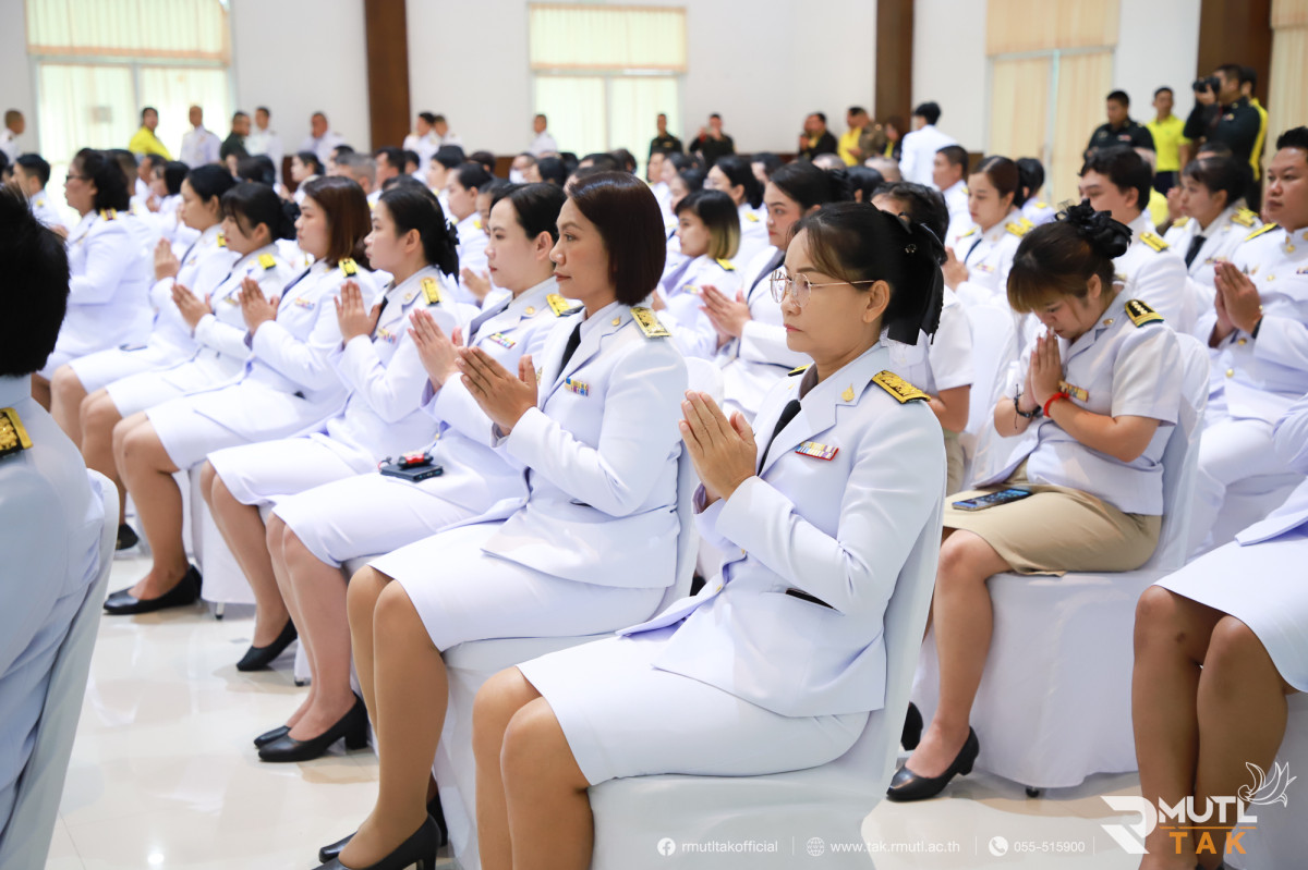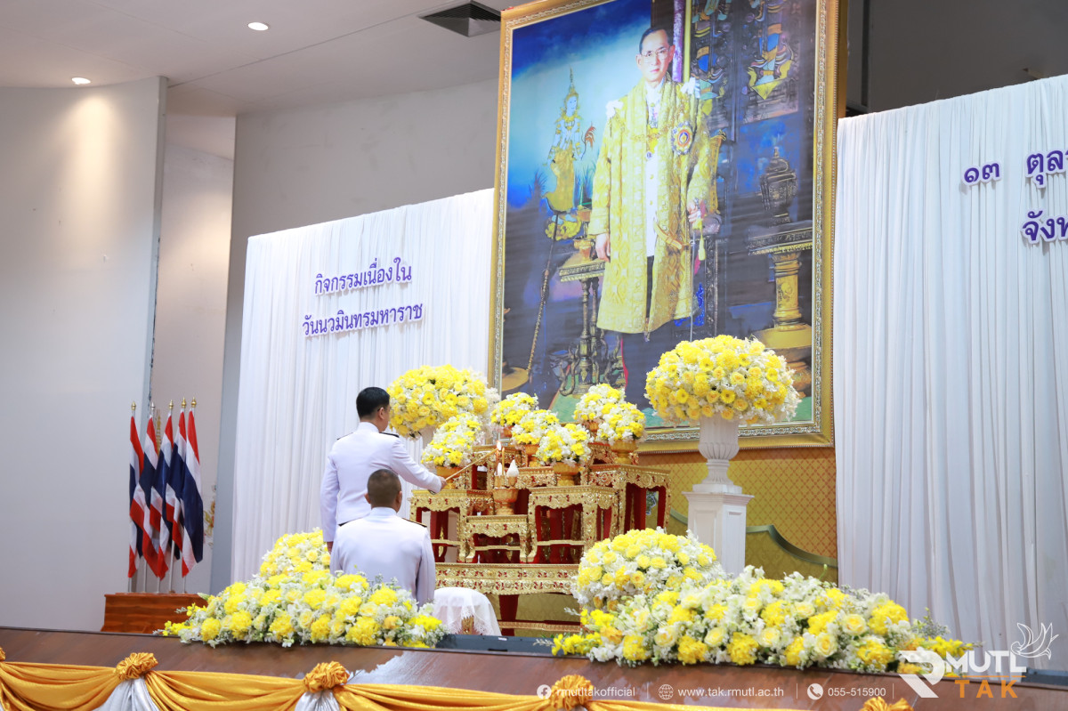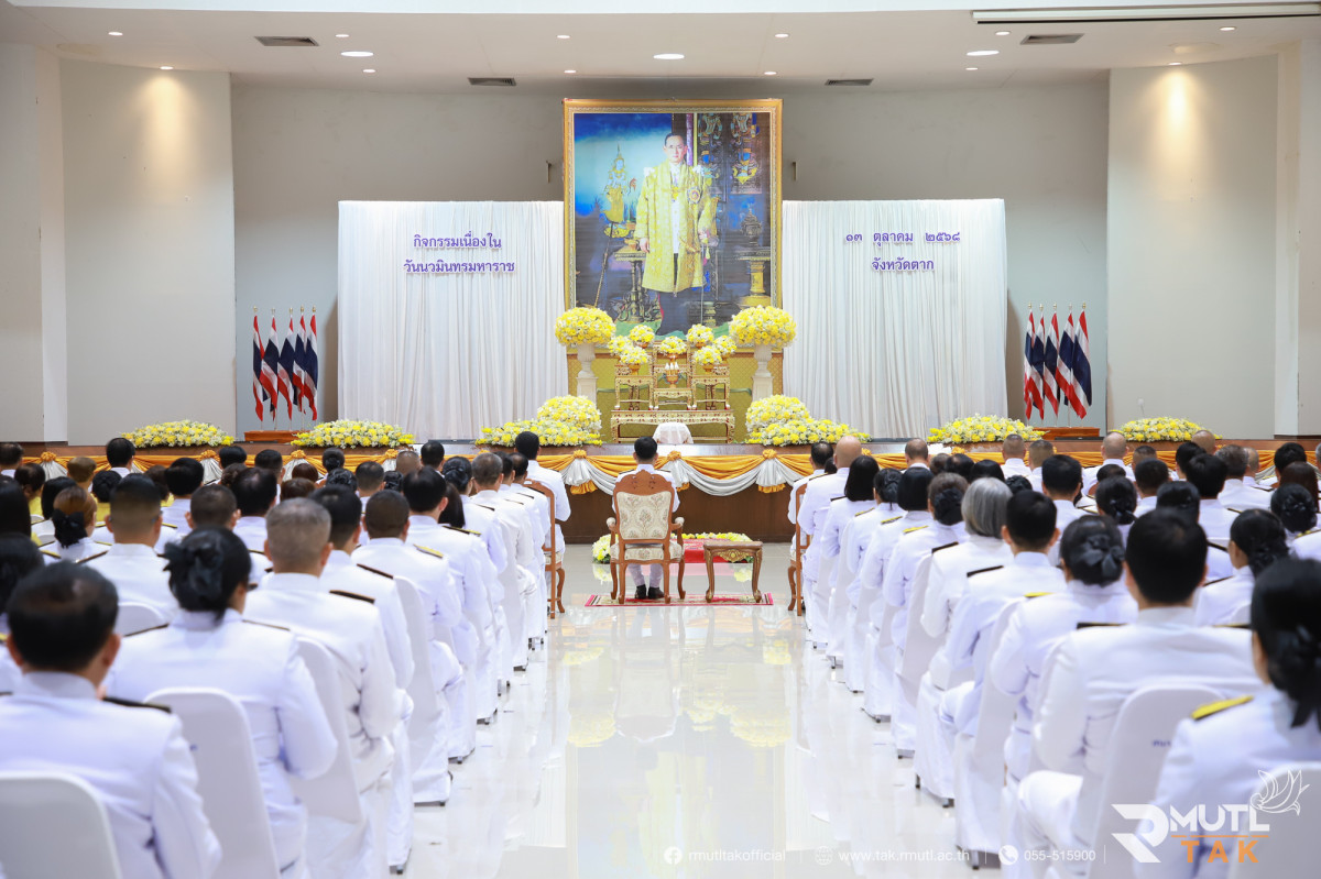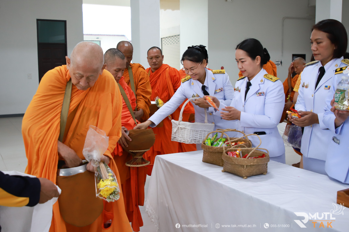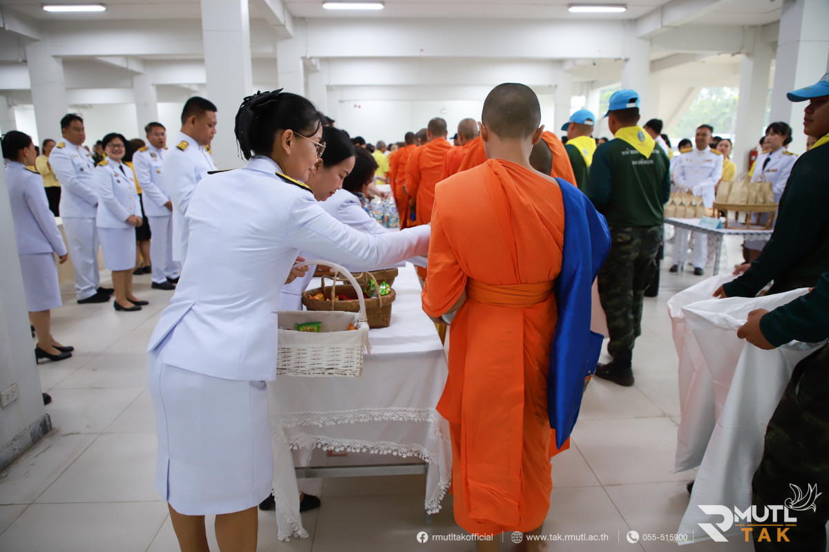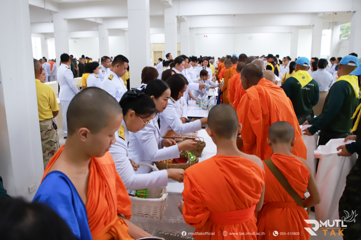 วันนี้ (13 ต.ค. 68) เวลา 07.30 น. ที่อาคารหอประชุมจังหวัดตาก ศาลากลางจังหวัดตาก ผู้ช่วยศาสตราจารย์สรินยา สุภัทรานนท์ รองคณบดีคณะบริหารธุรกิจและศิลปศาสตร์ พร้อมด้วยบุคลากรมหาวิทยาลัยเทคโนโลยีราชมงคลล้านนา ตาก ร่วมพิธีทำบุญตักบาตรถวายพระราชกุศล พระบาทสมเด็จพระบรมชนกาธิเบศร มหาภูมิพลอดุลยเดชมหาราช บรมนาถบพิตร เนื่องในวันนวมินทรมหาราช 13 ตุลาคม 2568 โดยนายสวนิต สุริยกุล ณ อยุธยา รองผู้ว่าราชการจังหวัดตาก รักษาราชการแทนผู้ว่าราชการจังหวัดตาก เป็นประธานในพิธี พร้อมด้วยหัวหน้าส่วนราชการ ข้าราชการ และพสกนิกรชาวจังหวัดตากทุกหมู่เหล่าเข้าร่วมพิธีอย่างพร้อมเพรียง และตักบาตรข้าวสารอาหารแห้งแด่พระสงฆ์จำนวน 89 รูป เพื่อเป็นการน้อมรำลึกในพระมหากรุณาธิคุณอันหาที่สุดมิได้