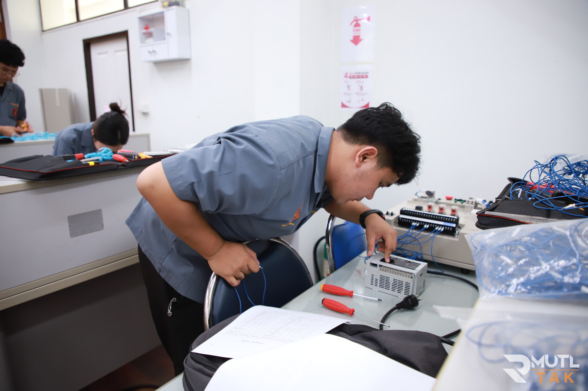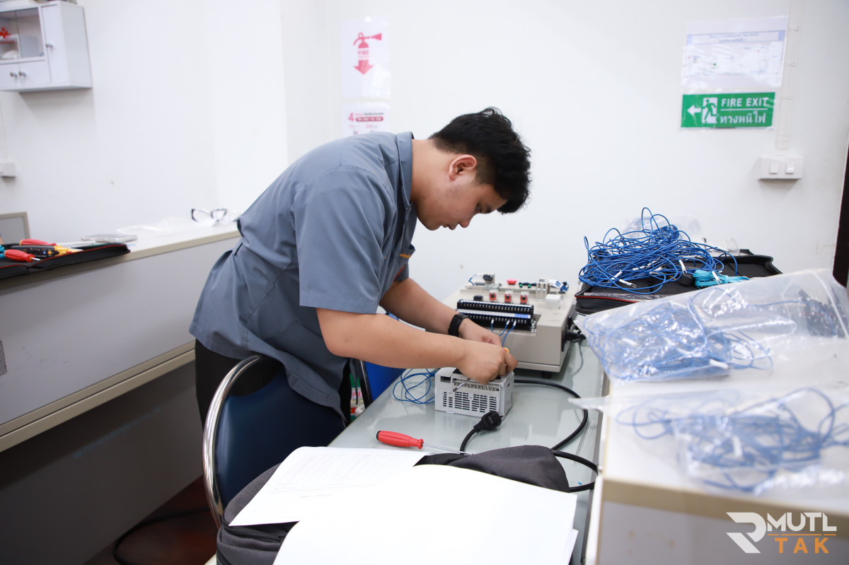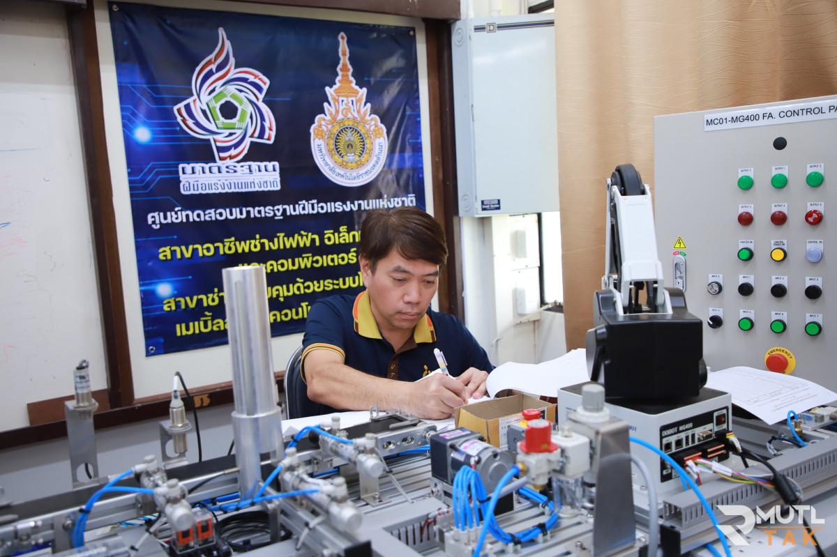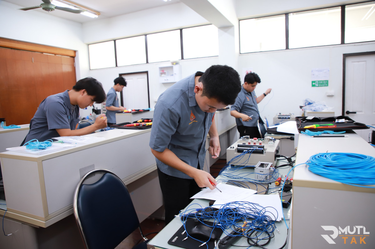 วันที่ 12 มีนาคม 2569 มหาวิทยาลัยเทคโนโลยีราชมงคลล้านนา ตาก ในฐานะศูนย์ทดสอบมาตรฐานฝีมือแรงงาน ดำเนินการจัดทดสอบมาตรฐานฝีมือแรงงานแห่งชาติ สาขาช่างควบคุมด้วยระบบโปรแกรมเมเบิ้ลลอจิกคอนโทรลเลอร์ (PLC) ระดับ 1 ณ ห้องปฏิบัติการระบบควบคุมอัตโนมัติ มีบุคลากรสาขาวิศวกรรมไฟฟ้าและคอมพิวเตอร์ นักศึกษาหลักสูตรวิศวกรรมคอมพิวเตอร์ หลักสูตรวิศวกรรมอิเล็กทรอนิกส์ และหลักสูตร ปวส.อิเล็กทรอนิกส์และหุ่นยนต์ เข้ารับการทดสอบทั้งภาคความรู้และภาคความสามารถ เพื่อประเมินความรู้ ความสามารถ และทัศนคติในการทำงานตามสาขาอาชีพให้เป็นไปตามเกณฑ์ที่กำหนดในมาตรฐานฝีมือแรงงานแห่งชาติ ซึ่งเป็นเครื่องยืนยันความรู้ความสามารถตามมาตรฐานสากลก่อนเข้าสู่ตลาดแรงงาน เตรียมความพร้อมสู่อุตสาหกรรม 4.0 โดยมุ่งเน้นการพัฒนากำลังคนให้เชี่ยวชาญด้านระบบอัตโนมัติ ซึ่งเป็นหัวใจสำคัญของโรงงานอัจฉริยะในปัจจุบัน เพิ่มโอกาสในการจ้างงานให้นักศึกษามีทักษะที่ปฏิบัติงานได้จริง และพร้อมรับอัตราค่าจ้างตามมาตรฐานฝีมือแรงงานแห่งชาติ