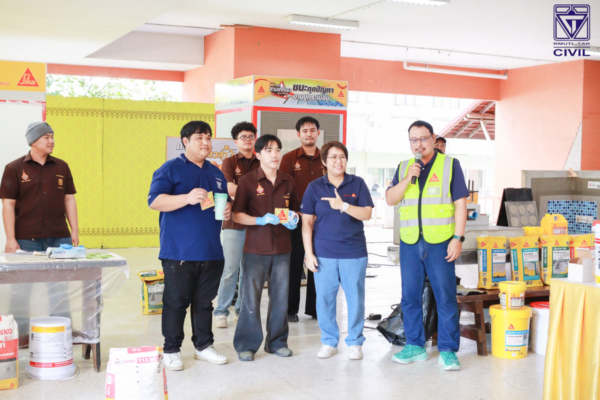 วันที่ 18 ธันวาคม 2568 สาขาวิศวกรรมโยธาและสิ่งแวดล้อม คณะวิศวกรรมศาสตร์ จัดโครงการเตรียมความพร้อมก่อนออกฝึกงานในสถานประกอบการ ภาคฤดูร้อน ปีการศึกษา 2568 หัวข้อมาตรฐานผลิตภัณฑ์สำหรับงานตกแต่งผนังและงานปูกระเบื้องในพื้นที่เปียก (Wall & Wetroom Solution) มุ่งยกระดับทักษะและสมรรถนะนักศึกษาหลักสูตร ปวส.ช่างก่อสร้าง และหลักสูตรวิศวกรรมโยธา เพื่อเตรียมความพร้อมให้นักศึกษามีความมั่นใจ มีระเบียบวินัย และก้าวทันเทคโนโลยีการก่อสร้างสมัยใหม่ที่เปลี่ยนแปลงอย่างรวดเร็ว โดยเน้นการบูรณาการความรู้จากห้องเรียนสู่การปฏิบัติงานจริงในสถานประกอบการ เพื่อให้การฝึกงานมีประสิทธิภาพสูงสุดและเป็นรากฐานสำคัญในการประกอบอาชีพในอนาคต ให้นักศึกษาได้เรียนรู้เกี่ยวกับมาตรฐานผลิตภัณฑ์สำหรับงานตกแต่งผนัง (Skimcoat) เทคนิคการฉาบผนัง การเลือกใช้ผลิตภัณฑ์ให้เหมาะสมกับหน้างาน และการแก้ไขปัญหาหน้างาน ระบบงานกระเบื้องสำหรับห้องน้ำและพื้นที่เปียก (Wetroom) การป้องกันการรั่วซึม และการเลือกใช้กาวซีเมนต์ตามคุณสมบัติของวัสดุ และให้นักศึกษาได้ลงมือปฏิบัติจริง โดยมีผู้เชี่ยวชาญคอยให้คำแนะนำอย่างใกล้ชิด ทำให้นักศึกษาได้สัมผัสกับเครื่องมือและวัสดุจริง ช่วยลดช่องว่างระหว่างการเรียนในตำรากับการปฏิบัติงานในไซต์งานก่อสร้าง